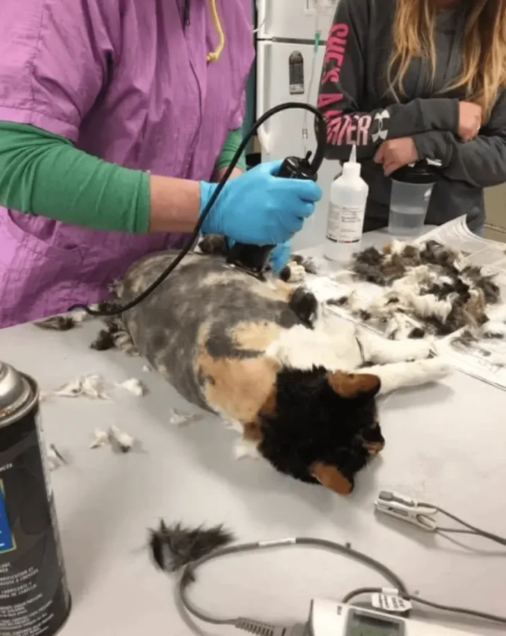 Fortunately, Hidey received assistance from veterinarian Jenn Levitzki. “Hidey has the worst matting I have ever seen; she has dreadlocks,” she wrote alongside a video of the grooming procedure that she shared on Facebook. Hidey was lightly drugged before to the treatment to ensure her comfort.